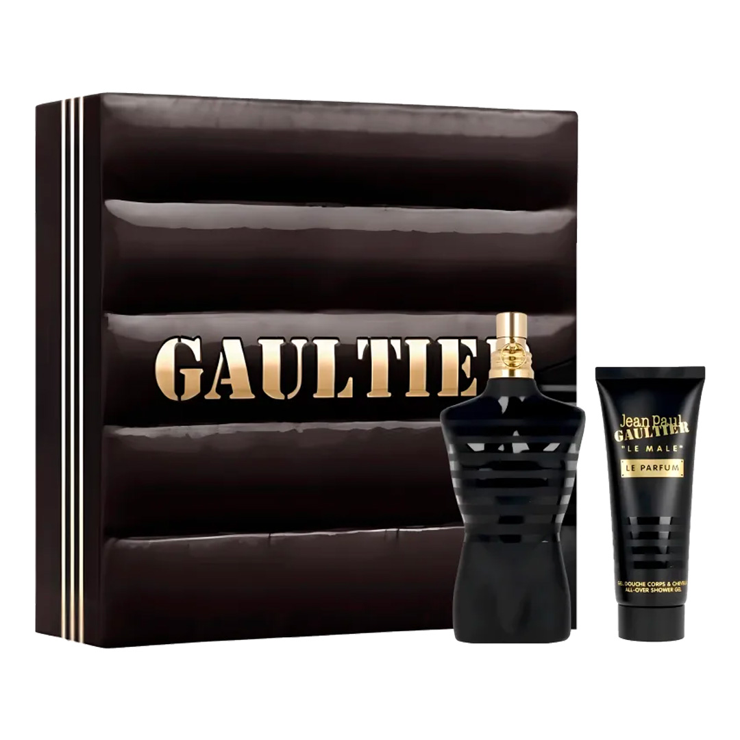 Conjunto com perfume Le Male Le Parfum masculino oriental amadeirado e gel de banho Jean Paul Gaultier. O presente perfeito para homens ousados.